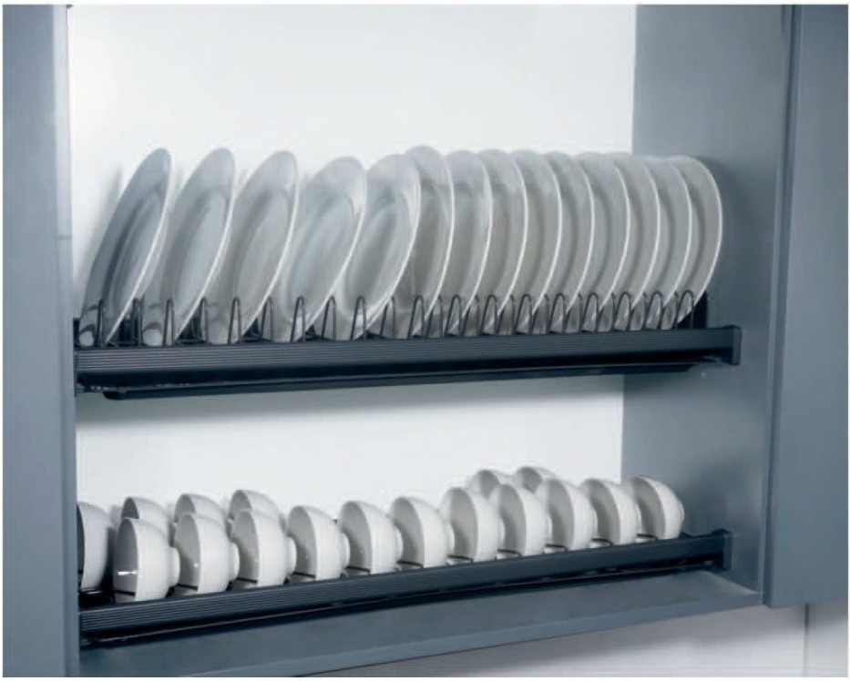 Hoàn thiện: Rổ inox mờ điện hóa khung nhôm mạ PVD xám đen / nhôm bạc