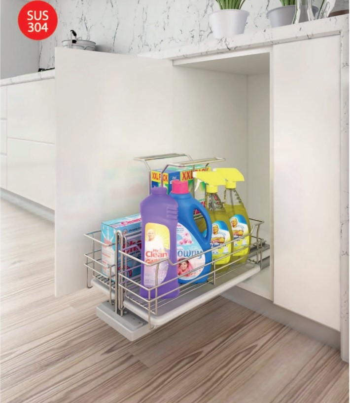 Đặc điểm: lắp âm tủ cánh mở, 2 rổ có thể nhấc rời thuận tiện, phù hợp lắp dưới gầm chậu rửa
